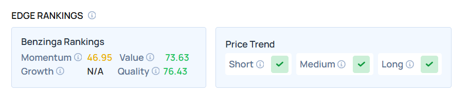 • Edge Stock Ratings: 46.95 Momentum score with Value at 73.63.